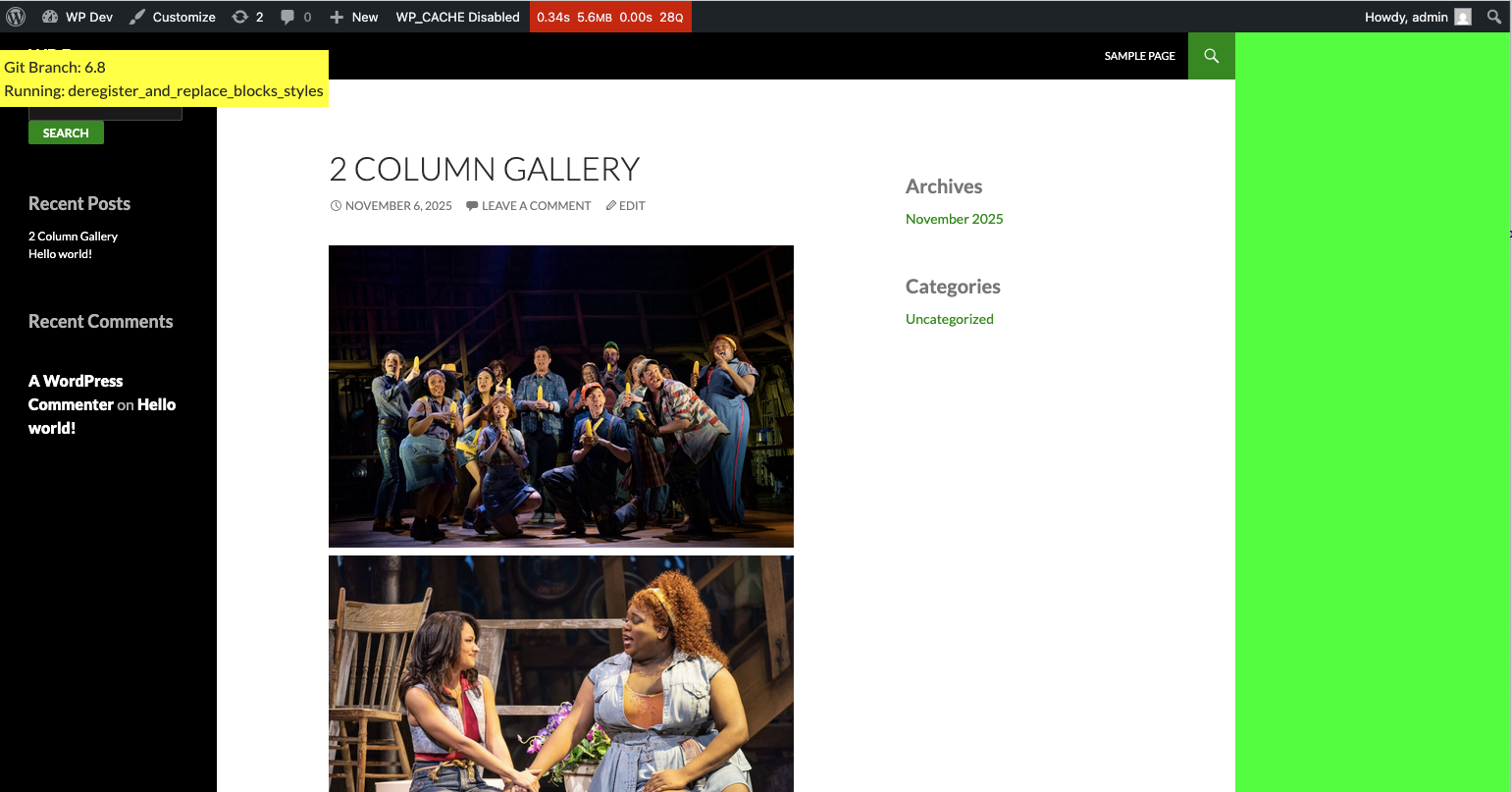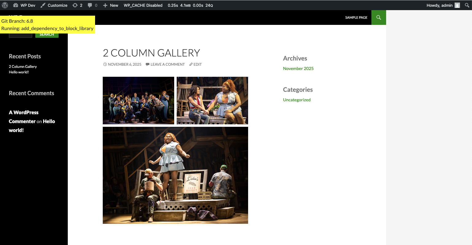 | Test function | WordPress 6.8 | Feature branch | Result |