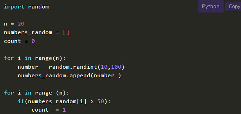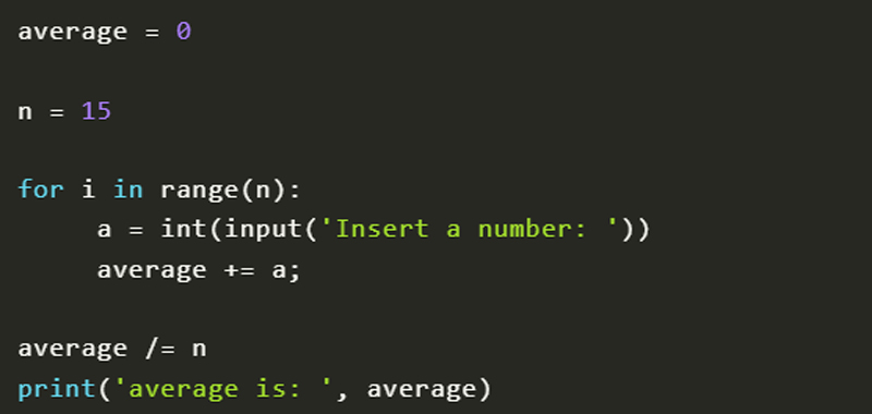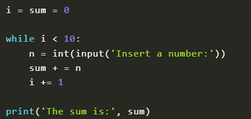 - Other exercises on the for loop (how to find the pairs of natural numbers whose sum is 20; count the pairs that generate a negative, positive or zero product without performing the operation; count the pairs that generate a positive, negative or nothing without performing the operation)