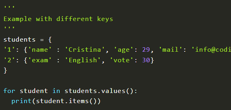 - items() method