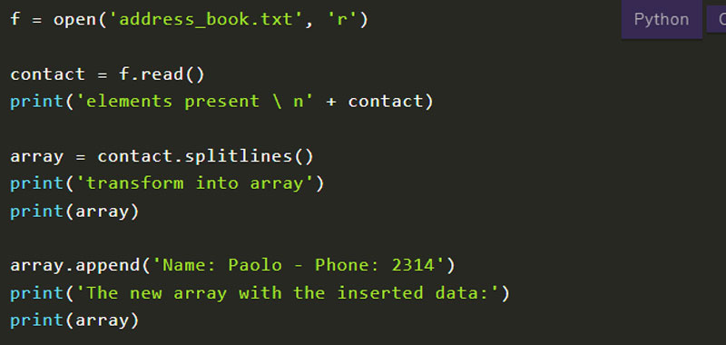 - Metodo read() in Python sui file
