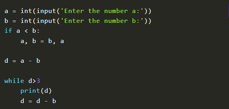 - While exercise (subtract the minor from the major until their difference becomes less than 3 units)